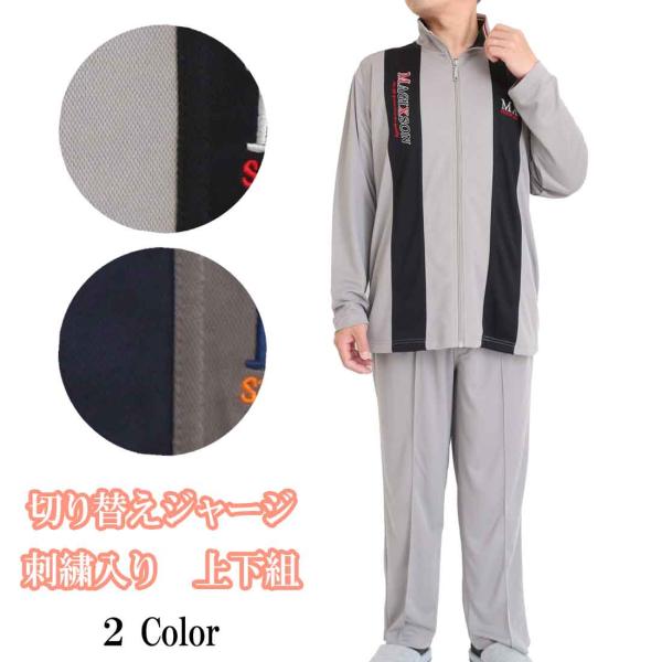 上下セット メンズ ジャージ パンツ ズボン リラクシングウェア ルームウエア 部屋着 メッシュ切替 刺繍入り 紐付き ゴム仕様 524220