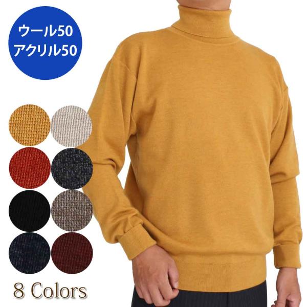 毛混 ゴム地 コーピル糸使用 タートルネック セーター ウール50% アクリル50% ベーシック シンプル デザイン 定番 ギフト プレゼント S M L LL 650551