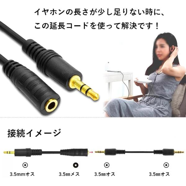オディオ 3.5mm 標準ミニプラグ両端付きケーブ 1.5メートル