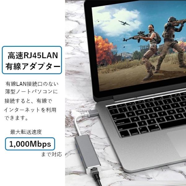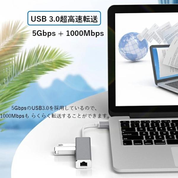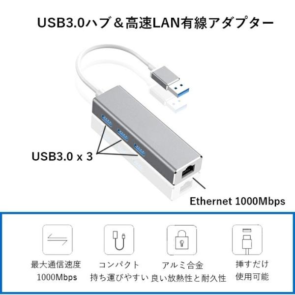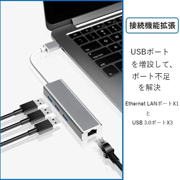 軽量アルミ二ウム合 USB 3.0 ハブ3ポート1Gbps/100Mbps/10Mbps RJ45対応有線LAN アダプター対応