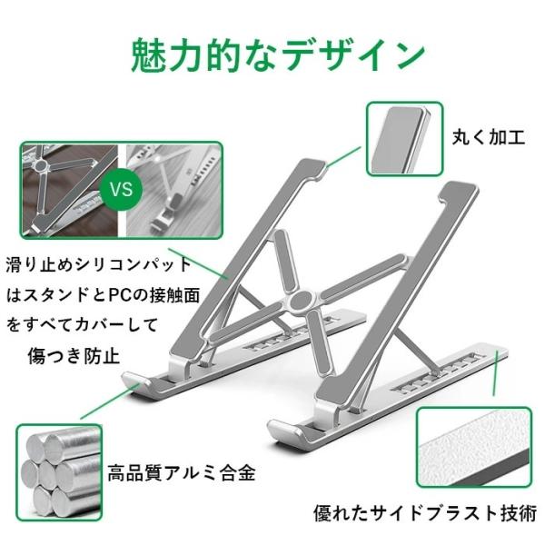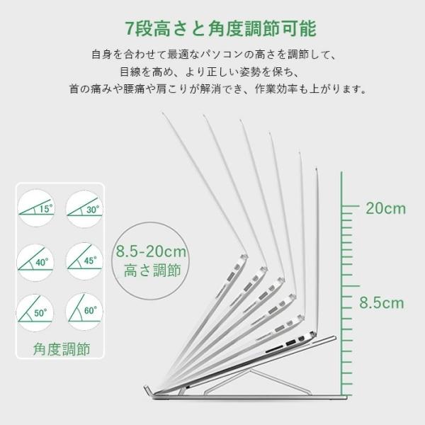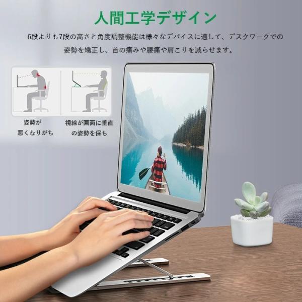 折りたたみ式 pcスタンドノートパソコンスタンド 7段の高さ調節可能 角度調整 滑り止め 軽量 持ち運びに便利 アルミ製 10〜17.3インチに対応 オンライン授業