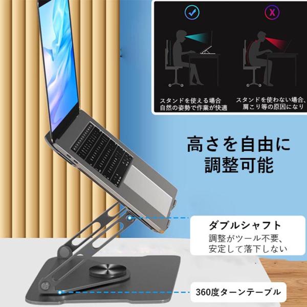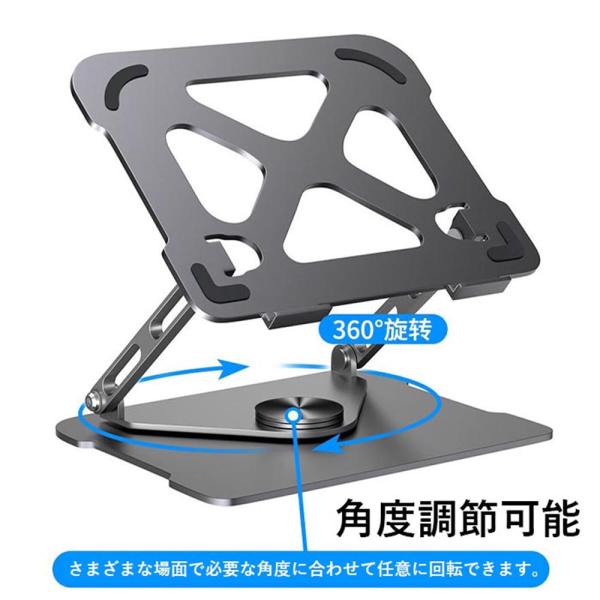 ノートパソコンスタンド 折りたたみ式 pcスタンド 360°回転 高さ調節可能 角度調整