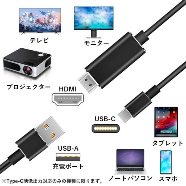 USB-TYPE C ⇒ HDMI 変換ケーブル 充電しながら投影 USB-A給電可