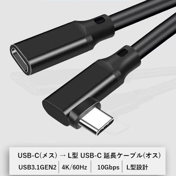 【0.2メートル】 L型 USB-C → L型 USB-C 延長ケーブル
