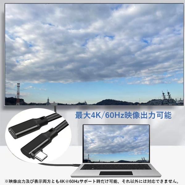 ■商品名: L型 eMarker IC内蔵Type C(メス) → Type C オス 延長ケーブル データ通信/映像4K/充電100W PD対応0.2メートル