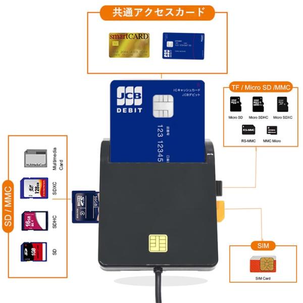 ICカードリーダー 接触型ICカードリーダー CAC/SD/Micro SD (TF)/SIM スマートカードリーダー