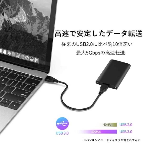 ・対応転送速度:最大5Gbps ※理論値、USB2.0の10倍以上の最大5Gbpsの転送速度を実現します。
