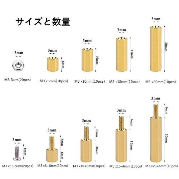 M3ネジ箱入り銅ピラー 六方晶の単スタッドスーツ ネジ品揃えセット