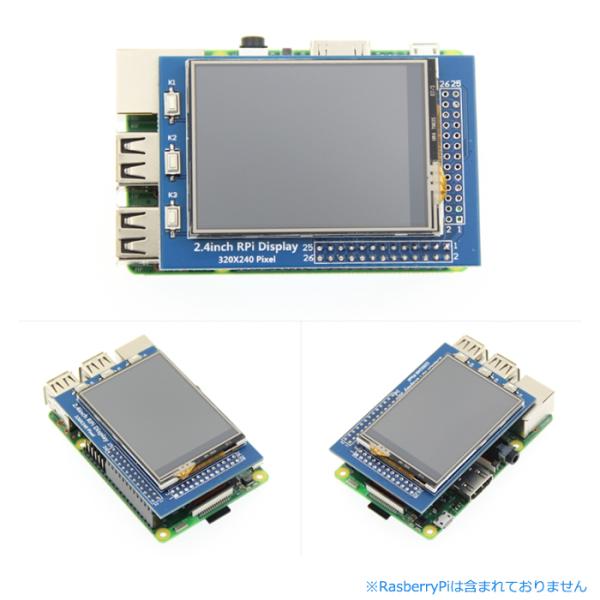 2.4インチ解像度320x240タッチ付き TFT LCDディスプレイとなっています。 RasberryPi 3B+/3Bなど対応しています。
