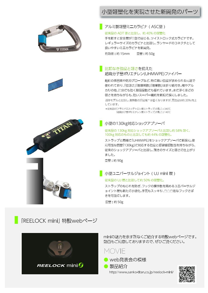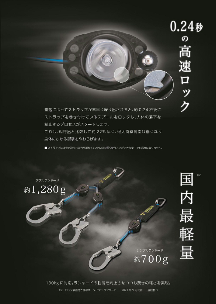 TITAN 巻取式 ランヤード シングル REELOCK mini 130kg HL-HS-130CC 【墜落制止器具 タイプ1 安全帯 ハーネス サンコー タイタン リーロック】