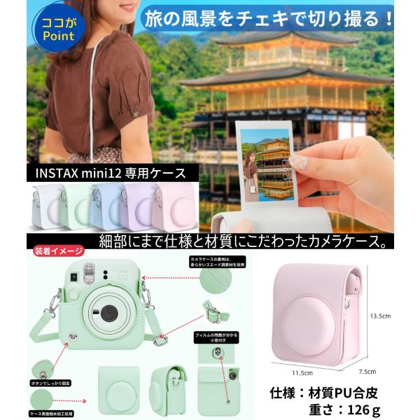 [10点セット] 富士フイルム チェキ instax mini12 本体 フィルム20枚 カメラケース[フェイクレザーケース] 他 オリジナル付属品付