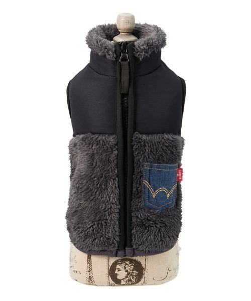 犬 服 EDWIN/デニムポケット付切り替えフリースベスト