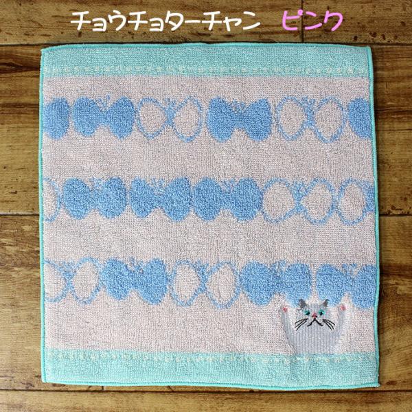 タオルハンカチ 20×20 猫 子供 刺繍 おしゃれ レディース ギフト 蝶々 ハンカチ チョウチョターチャン
