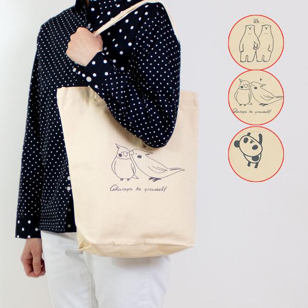 トートバッグ 幌布 a4 縦型 パンダ 肩掛け クマ 猫 鳥 サブバッグ 学生 レディース ポケット 綿 シンプル おしゃれ アニマル エコバッグ トートバッグ