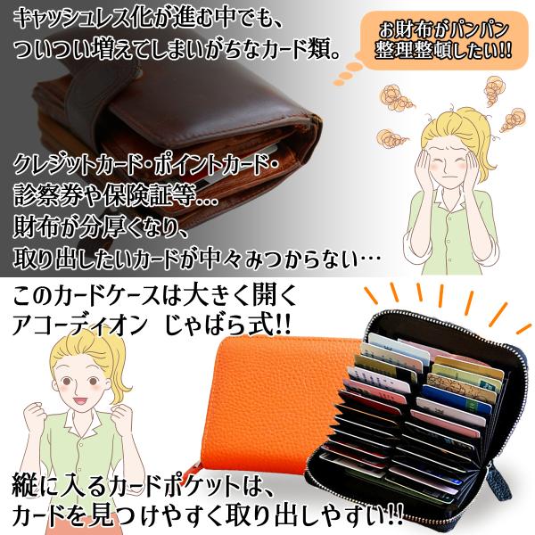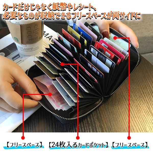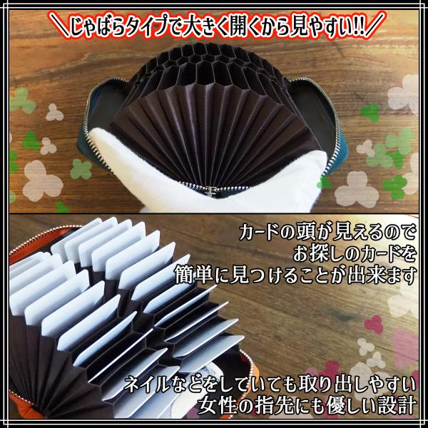 カードケース 大容量 カード入れ じゃばら レディース レザー 牛革 本革 48枚 24ポケット おしゃれ かわいい ラウンドファスナー